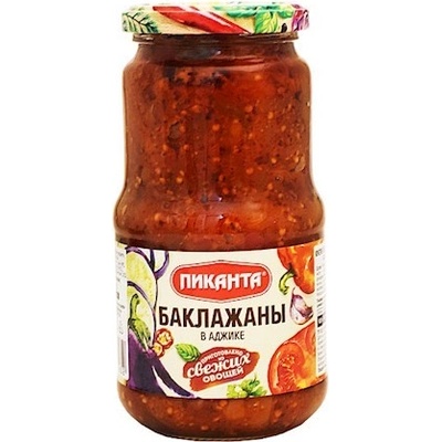 Lilek v adžice Pikanta 520g Složení: lilek 38%, rajčata, paprika, slunečnicový olej, rajčatová pasta, cukr, česnek, sůl, pšeničná mouka, byliny, koření, kyselina...