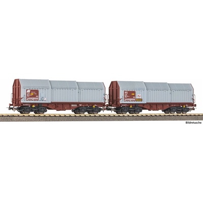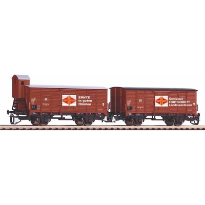 Set obsahuje 2 zavřené nákladní vozy. Minimální poloměr 310 mm. Kinematika krátkého spřáhla.