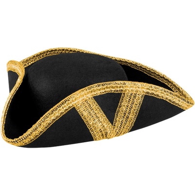 Plstěný klobouk třírohák vhodný jako doplněk k různým historickým kostýmům, piráta, admirála..... Obvod hlavy: 59 cm Materiál: 100% polyester Barva: černá