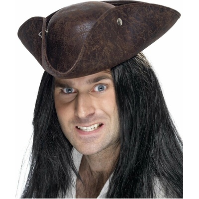 Hnědý pirátský klobouk s vlasy a korálky, kožený vzhled. Klobouk, ve kterém budete vypadat jako kdyby jste se právě vylodil z pirátského korábu. Materiál: 40% polyester, 56%...