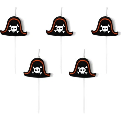 Sada svíček ve tvaru pirátských klobouků je ideální pro tématické zdobení dortů. Balení obsahuje 6 ks svíček, každá má průměr 2,5 cm.
