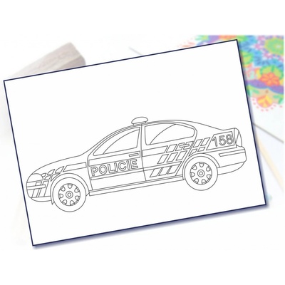 Tato šablona zachycuje policejní auto se všemi charakteristickými prvky, ať už jde o typické pruhy nebo výstražný maják. Přidáno navíc bylo telefonní číslo 158, které si tak...
