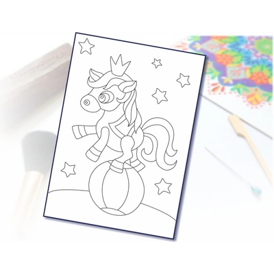 Tato šablona na pískování zachycuje nádherné jednorožce v kouzelném světě, kde se vznáší duhové barvy a jiskří fantazie. Díky barevnému písku můžeš vytvořit oslnivou kombinaci...