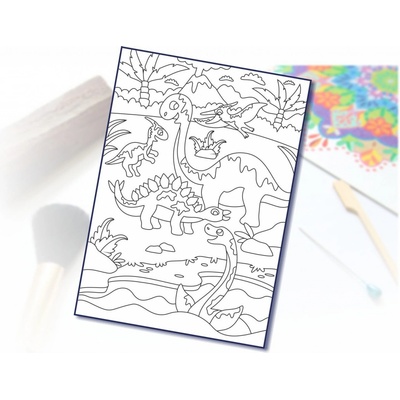 Tato šablona na pískování zachycuje několik dinosaurů, jak se pohybují mezi kapradinami, sopkami a jezery. Díky barevnému písku můžeš zvýraznit různé druhy dinosaurů, bujnou...