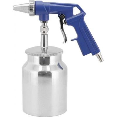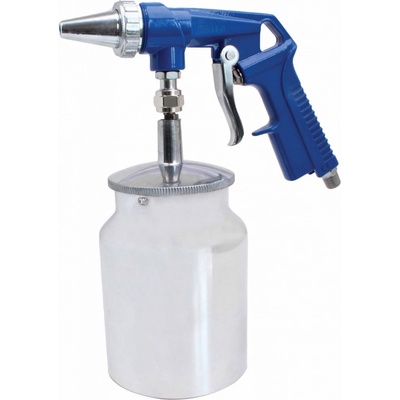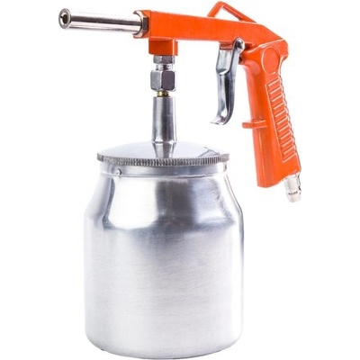 Pískovací pistole se spodní kovovou nádobkou Technické parametry: Spotřeba vzduchu 250–300 l/min. Připojení vzduchu: rychlospojka 1/4" Tryska průměr: 6,3 mm Pracovní tlak 6–8...