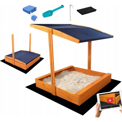 Dřevěné pískoviště se stříškou 120x120 cm - impregnované ✴️ Předvrtané všechny otvory a body na šroubování ✴️ Jednoduchý návod na složení – 3D video animace ✴️ Balíček...