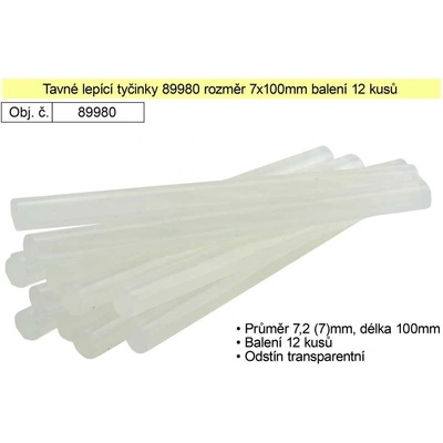 náplň do tavné pistole 7,2 x 100 mm (12ks) - tavné tyčinky pro rychlé a jednoduché montáže - lepení za tepla a opravy různých materiálů (PVC, plastů, dřeva, korku, kovů, skla,...