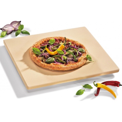 Kámen na pizzu z cordieritu s nerezovým podstavcem je ideální pro přípravu v troubě či na grilu a servírování pokrmů. Zajistí křupavý spodek při zahřátí na 200 °C po dobu 15 minut. Rozměry kamene jsou 40 x 35,5 cm.