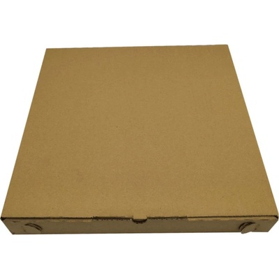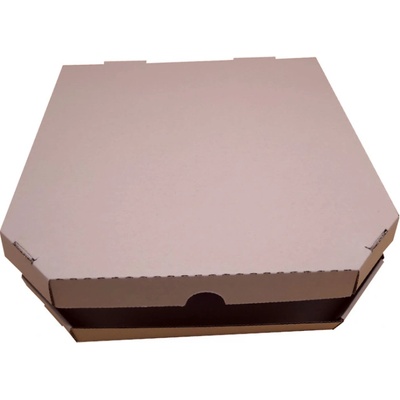 Krabice na pizzu v hnědo-hnědé barvě o rozměrech 40 x 40 x 4 cm. Krabice jsou nepotištěné. Pizza krabice má zkosené hrany. Krabice jsou určené pro styk s potravinami a jsou balené v rozloženém stavu. 100 ks/balení. Minimální odběr = 1 balení.