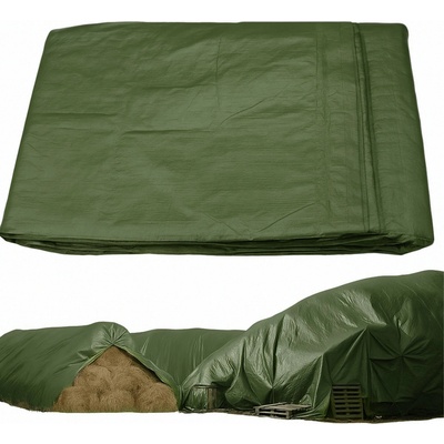 prodyšná krycí plachta, vyrobena z polyethylenu PE 200 g/m2 po obvodu plachtová oka každých 50 cm gumové lano 6 mm po obvodu velikost 4 x 4 m barva tmavězelená