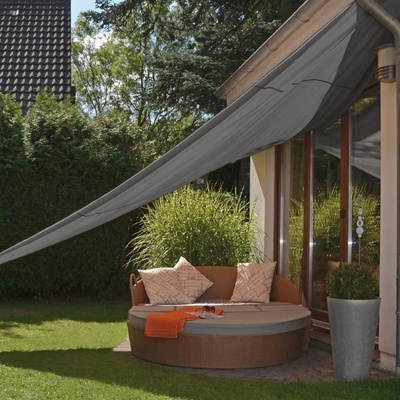 Originální napínací slunečník ve tvaru pravoúhlého trojúhelníku je určen k zastínění vašeho posezení na terase či zahradě. 5 let ZÁRUKA!