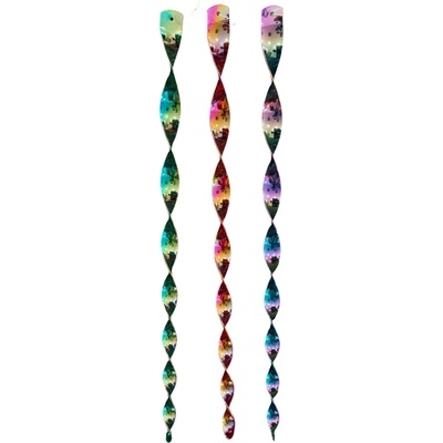 plašič ptáků twist závěsný set 3 ks Reflexní pásky na plašení ptáků při ochraně úrody a pod. V setu 3 kusy. Rozměry 48 x 3 cm Materiál PP