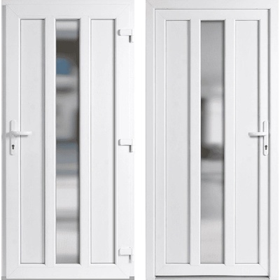 Skladem – vchodové jednokřídlé plastové dveře Magnus v rozměru 98 x 198 cm (rozměr i se zárubní) se otevírají dovnitř a jsou pravé. Tyto vstupní dveře v dekoru zlatý dub / bílá...