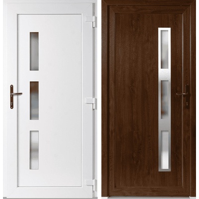 OknaDvereNaMiru.cz Vchodové plastové dveře 3-3 sklo čiré zlatý dub / bílá pravé otevírání dovnitř 88 x 198 cm
