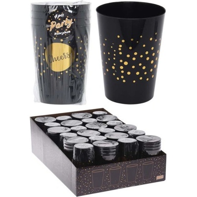 Skleničky na drink párty - plast. Objem:0,3L Balení: 4ks Barva: černá se zlatou.
