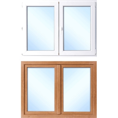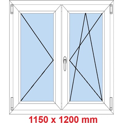 Skladem – dvoukřídlé plastové okno Otevíravé + Otevíravé i sklopné v rozměru 150x120 cm + 3 cm podkladní parapetní lišta je bez sloupku (Stulp) a křídlo s klikou je na pravé...