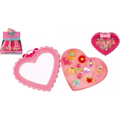Teddies Prstýnky/Prstýnek sada plast 12ks nastav. velikost 2 druhy v plastové krabičce 13x12x4cm 12ks v boxu