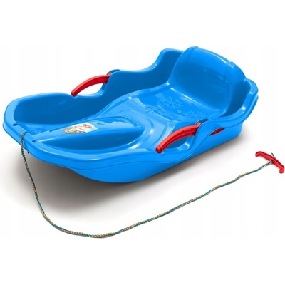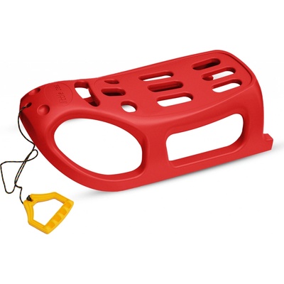 Pevné a lehké plastové sáňky s popruhem pro tahání, madly a úložným prostorem pod sedátkem. Popruh je umístěn v úložném prostoru. Skluznice jsou rozšířené pro opření nohou. Sáně...