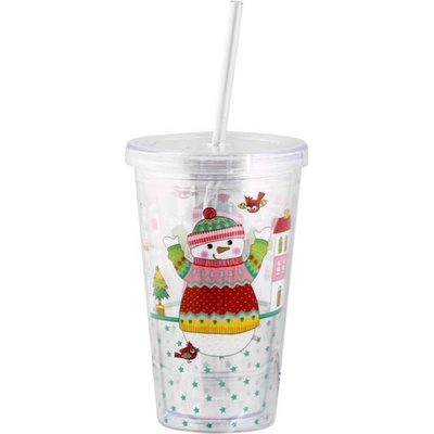 Plastový kelímek s brčkem o objemu 460 ml je vhodný především na míchané nápoje o vánočních večírcích. Assort vánočních motivů - sněhulák a tučňák.