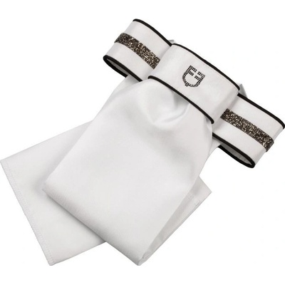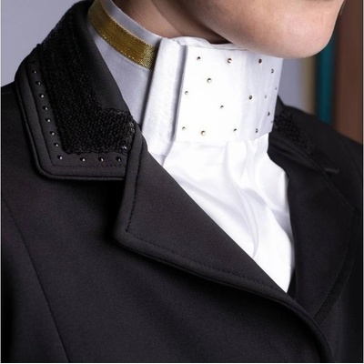 Plastron z klasické bílé technické tkaniny je klíčovým doplňkem drezurního závodního oblečení. Je mimořádně praktický díky zapínání límce na suchý zip. Zdobí ho logo Equestro s vícebarevnými kamínky a nápis Equestro na zadní straně. bílá technická tkanina zdobený...