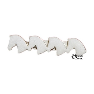 Elegatní brož na plastron či kravatu s motivem čtyř koňských hlav. čtyři siluety koňských hlav postříbřené baleno v krabičce s červeným sametem Zakazníci také hledají jako:...