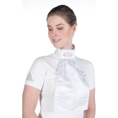 Drezurní plastron Harrys Horse v bílé barvě s kamínky. Jednoduché zapínání na suchý zip. Náhradní nažehlovací kamínky jsou součástí balení.