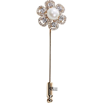 Lesklá jehlice ve tvaru květu s umělou perlou uprostřed pro elegantní zdobení. univerzální použití jako plastronová spona nebo ozdoba do klopy dodávána v malé dárkové krabičce...