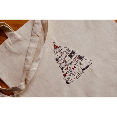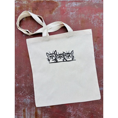 Šťastné a umňaukané. Praktická látková taška s výšivkou kočiček. Velikost tašky je 35 x 40 cm. Taška má delší ucha - 60 cm na přehození přes rameno.