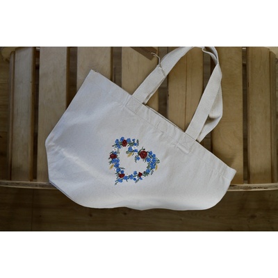 Květinou ženu nezarmoutíš. A co teprve, když je ve tvaru srdce! Praktická látková taška s květinovou výšivkou srdce. Velikost tašky je 52 x 33 cm. Taška má delší ucha - 60 cm...