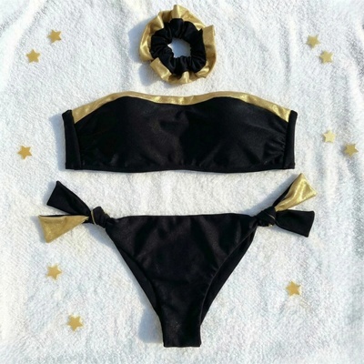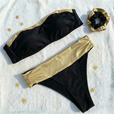 Sparkle*Me černé plavky 3v1 s vysokým pasem – lesklé bikiny s ozdobou a dárkem Velikost: Small/Medium