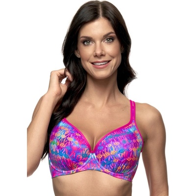 Dámské plavky Fantasy z nové kolekce Amy. Dámský horní plavkový díl v zářivém barevném provedení má jemně vyztužené nařasené košíčky s kosticemi a nižší střed. Plavky lemuje...