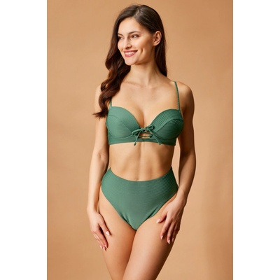 Upozornění: Tyto plavky jsou vhodné pro ženy s menšími prsy. Horní díl má výstřih do V se záhyby kříže, nastavitelné popruhy a zabudované polstrování. Plavky jsou nízko...