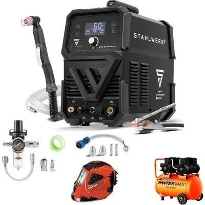Plasmová řezačka STAHLWERK CUT 60 P Digital Inovovaný a vylepšený plasmový řezací stroj následovník CUT60 P pro ruční řezání uhlíkatých ocelí do maximální tloušťky 20 mm....