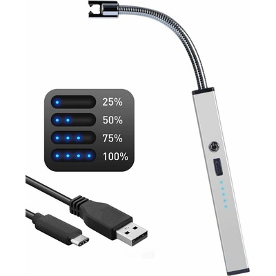 Plazmový zapalovač s tvarovatelným krkem a USB-C nabíjením. Bez plamene, bez doplňování plynu, funguje jen na elektrický proud z dobíjecí baterie, odolný větru, zapálí během...