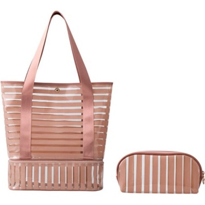 Dámská plážová taška z plastu, se zapínáním na magnet. Spodní část tašky lze otevřít samostatně zipem. Přehledně do ní uložíte všechny potřeby a při cestě z pláže nepropustí...