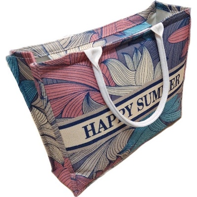 Látková plážová taška s nápisem, šedá. Taška na pláž v přírodních barvách s lanovými uchy. Pro všechno potřebné pro nádherný den strávený u vody. Taška na pláž přes rameno...