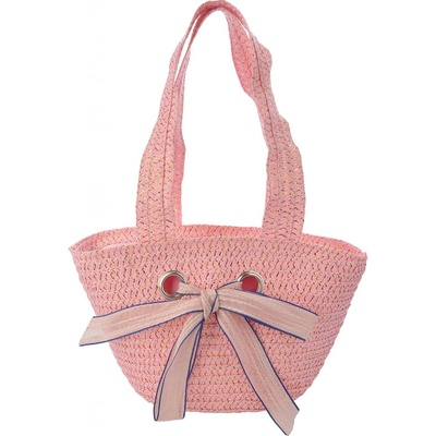 Růžová plážová taška s dvěma uchy a mašlí bude skvělým doplňkem při letních procházkách kolem vody.