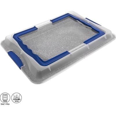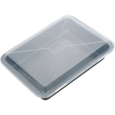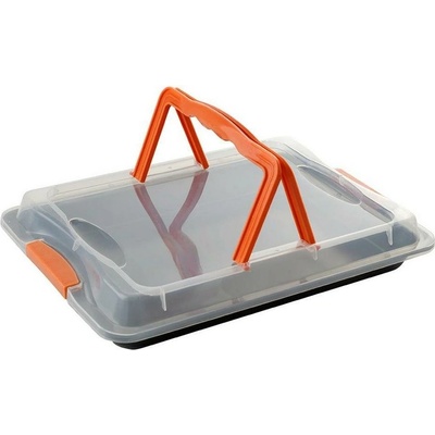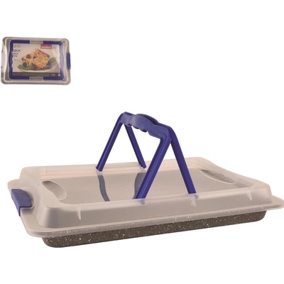 Pečící plech 42x29 cm Florina s nepřilnavým povrchem a plastovým víkem, síla materiálu 0,5mm, víko s přepravními úchyty. Technické parametry produktu: Plech s umělým víkem 42x29...