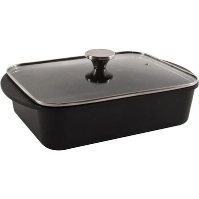 Všestranný pekáč s nepřilnavým povrchem o rozměru 40x27,5x8 cm má po přiklopení poklicí na výšku 12 cm. Hliníkový korpus je potažen kvalitní nepřilnavou vrstvou PFLUON GRANIT,...