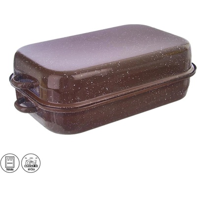 Smaltovaný oboustranný pekáč BROWN s víkem, rozměry 34,5/39x23x7/13 cm, ideální pro všestranné použití. Objevte praktického pomocníka pro vaši kuchyni, smaltovaný pekáč BROWN...