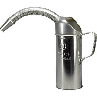 Odměrná nádoba z bílého plechu (pocínovaná) o objemu 1 l má kovový pružný výtokový nástavec dl. 230 mm, ergonomické držadlo a konzervovanou vrchní plochu, výšku 370 mm, základnu...