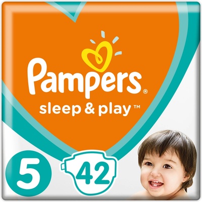 Pampers Sleep&Play V5, 42 Plenek, 11–16 kg Důvěrný Pocit Sucha "Nebojte se zůstat v parku o chvilku déle. S plenkami Pampers Sleep & Play mohou vaše výjimečné okamžiky trvat...