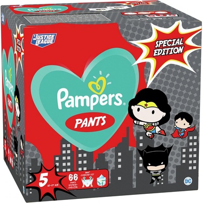Plenkové kalhotky Pampers Pants Special Edition s obrázky superhrdinů a s revoluční KAPSOU STOP & PROTECT, která spolu s dokonale padnoucím pružným pasem poskytuje až 12 hodin...