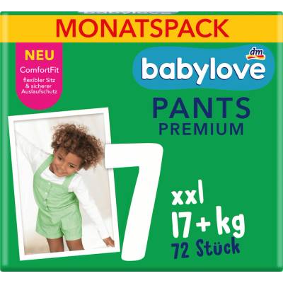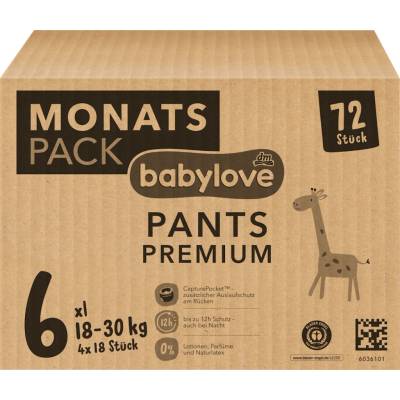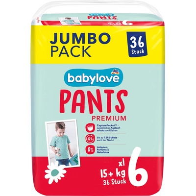 babylove Premium plenkové kalhotky xl Jumbopack jsou vhodné pro děti od 15 kilogramů. Plenkové kalhotky poskytují více svobody při pohybu díky optimálnímu střihu pro kyčle a nožičky. Jednoduše se navlékají a svlékají a jsou tak ideální k nacvičování používání nočníku....
