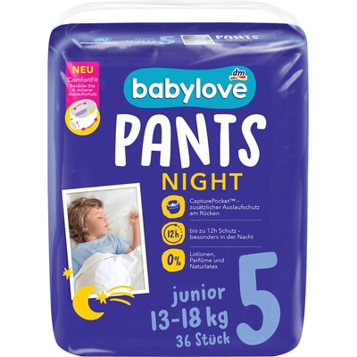 babylove plenkové kalhotky na noc jsou obzvláště jemné k pokožce. Nabízí spolehlivou ochranu během noci díky absorpčním kanálkům. babylove plenkové kalhotky obsahují pečlivě testované materiály a zajišťují optimální volnost pohybu.