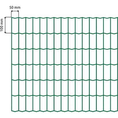 Svařované plotové pletivo, velikost ok 100x50 mm, výška 100 cm, tloušťka drátu 2,5 mm. Pletivo je vyrobeno z pozinkovaného a poplastovaného drátu. Barva zelená.