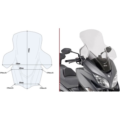 GIVI AF266 plexi čiré Suzuki Burgman AN 400 (06-16), nastavitelné v rozsahu vxš690-810x670 mm Pro montáž místo originálního plexi. ILUSTRAČNÍ FOTO