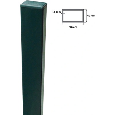 Sloupek dodáváme s čepičkou Rozměr sloupku: 60x40mm. Tloušťka stěny: 1,5mm. Výška: 2800mm. Povrchová úprava: Zn + RAL6005 zelená.