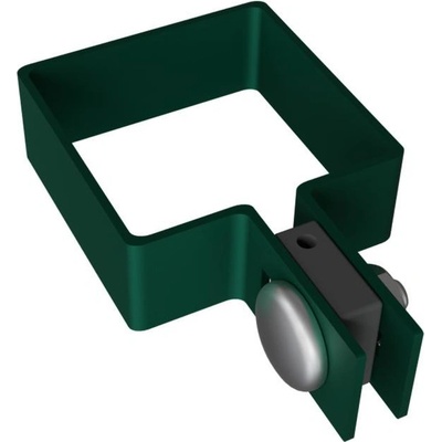 Objímka koncová na sloupek 60x60mm. Povrchová ůprava: Zn + RAL6005 zelená. Plastový vymezovač určený pro svařovaný panel o průměru drátu 4mm.
