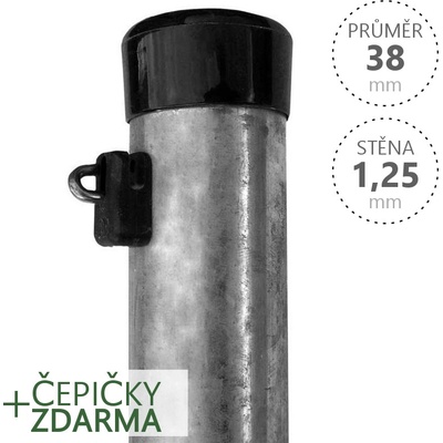 Kulatý plotový sloupek zinkovaný, průměr 38 mm, síla stěny 1,25 mm, včetně čepičky a držáku napínacího drátu. Výška dle výběru. Technické parametry - Průměr: 38 mm - Síla...